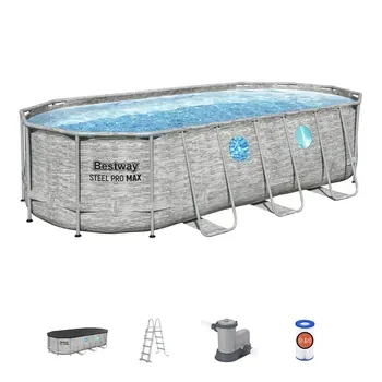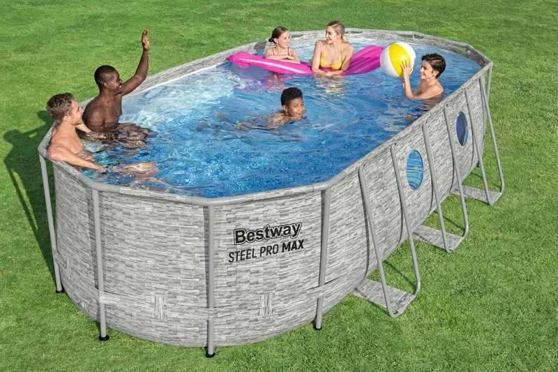 הסדרה מאופיינת במראה ראטן יוקרתי עם 4 חלונות חזקים עשויים מפלסטיק שקוף במרכז הבריכה.בריכה לגינה / לחצר אובלית תוצרת חברת BESTWAY עשויה ממסגרת מתכת מגולוונת, דוחה אבק וחלודה ויריעת פוליאסטר ו- PVC.